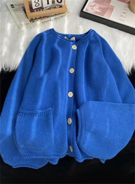 A cozy blue knitted sweater that blends softness with timeless charm. Designed with a classic knit texture and a relaxed fit, it’s your go-to for layering on cooler days. The calming blue hue adds a subtle pop of color while keeping your style understated and chic.
